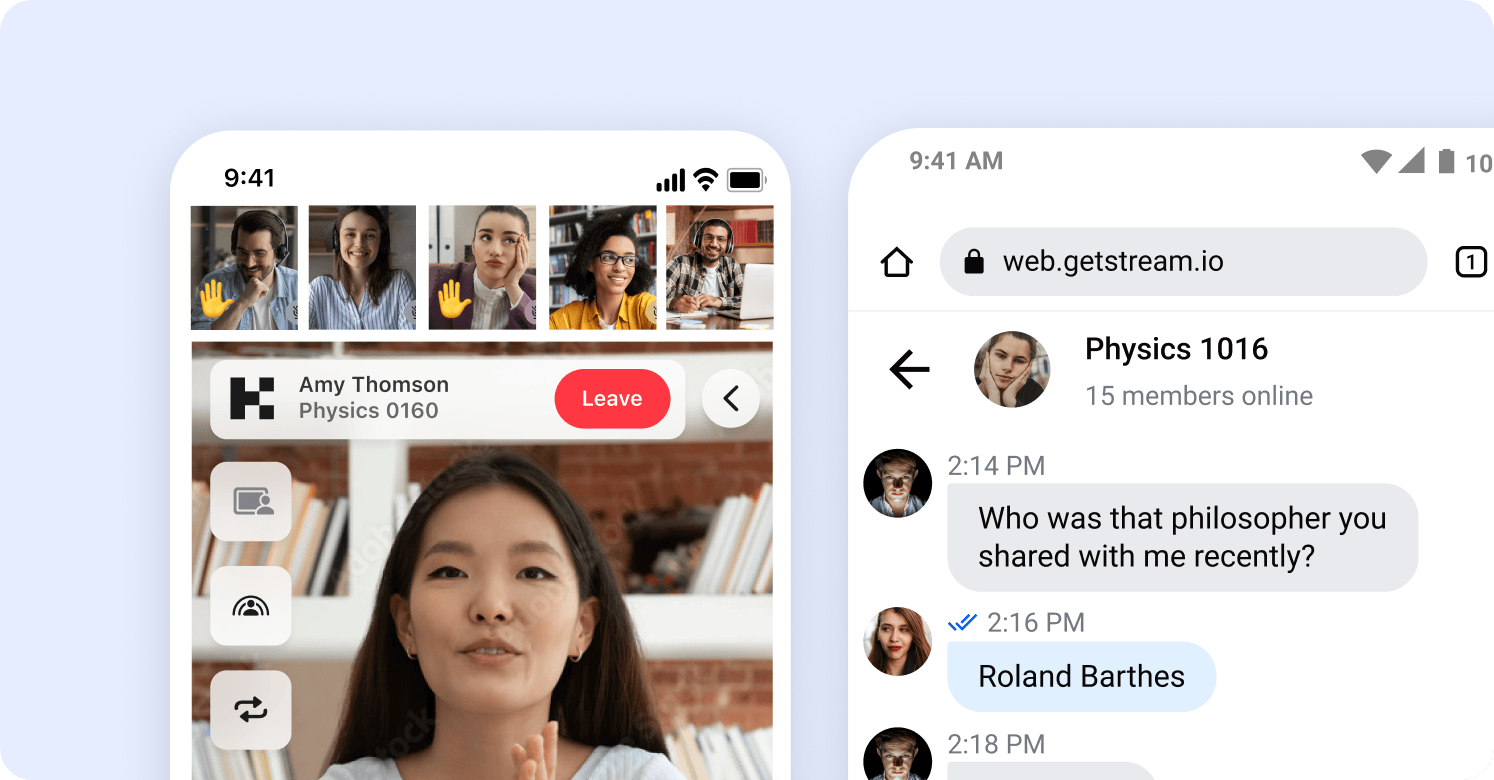 Build virtual classrooms and remote learning applications with Stream, connecting students, teachers, and parents with a secure, fully-featured solution.