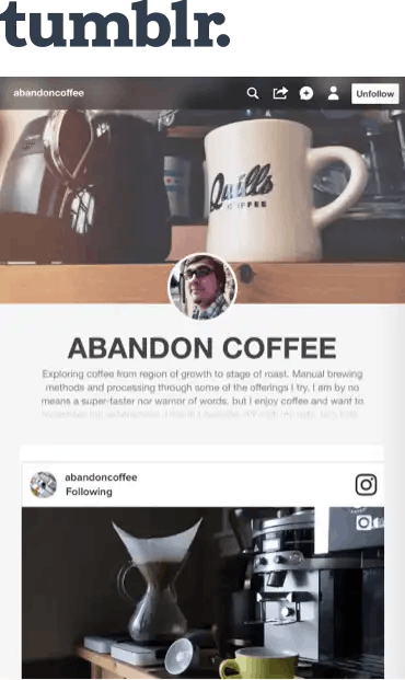 The designers at Tumblr worked really hard to make it easy for end users to customize their feed. If you log into your Tumblr account, you'll see a feed of the Tumblr accounts you follow. Clicking that feed gives you a nice slide-out that allows you (as the user) to focus on the account's content.