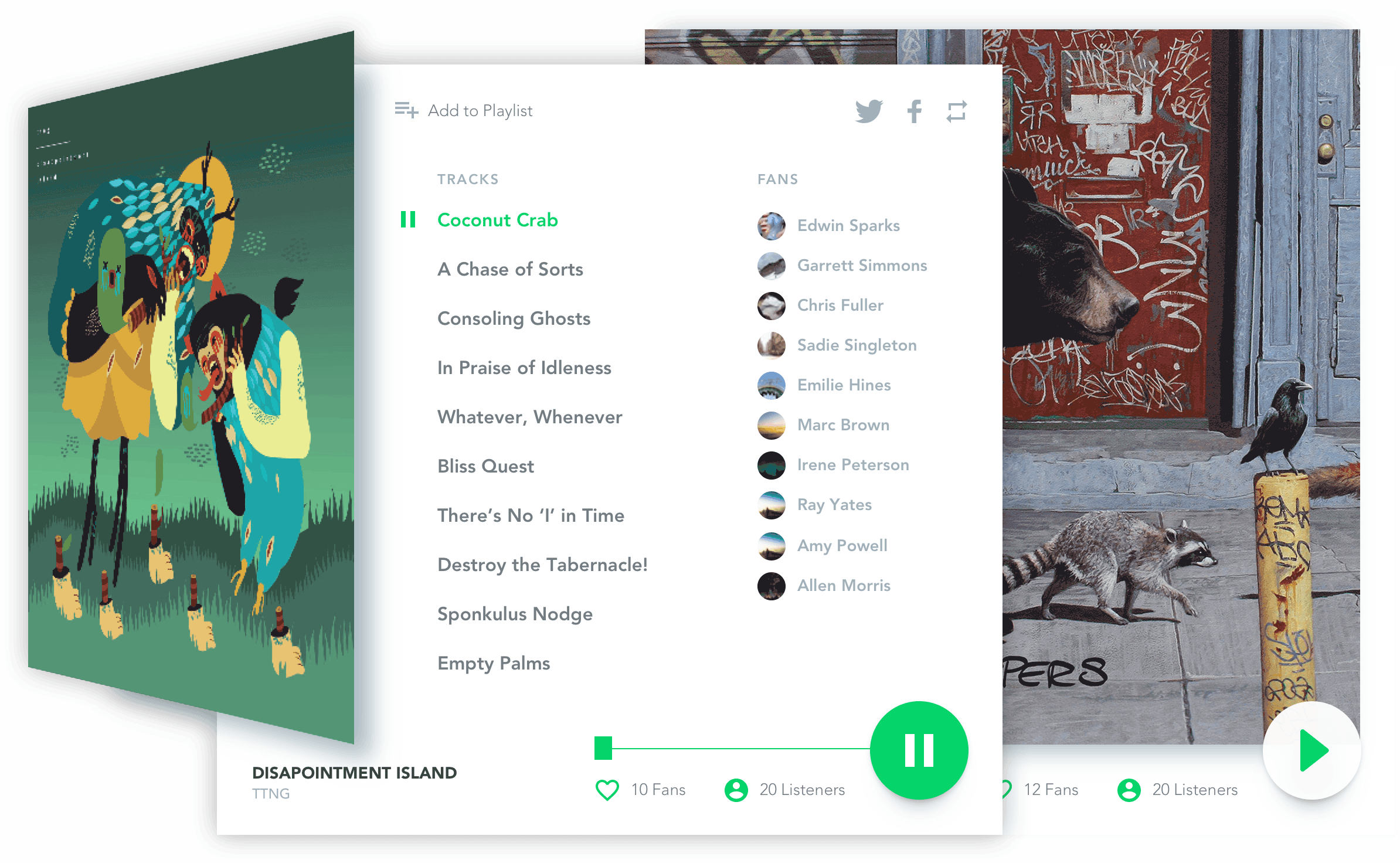 Are you designing the next Spotify or Youtube? Great! Based offers an easy to use media based feed patterns. Customize our music feed or video feed patterns or add a basic friend activity feed to something you've already designed. Based can help you design your feeds faster, regardless of where you are in the design process.