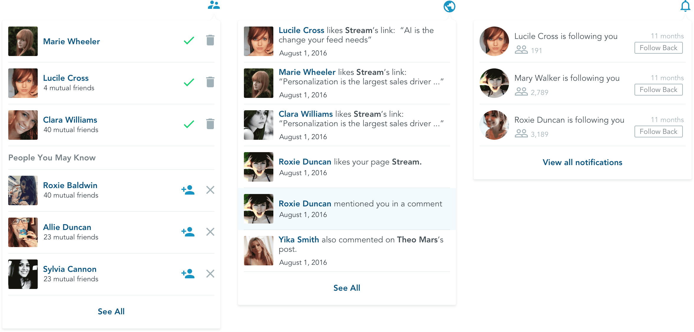 A versatile and comprehensive Feed UI Kit for Sketch. If you’re looking to jumpstart your design with notifications and social feeds, this is the way to do it.