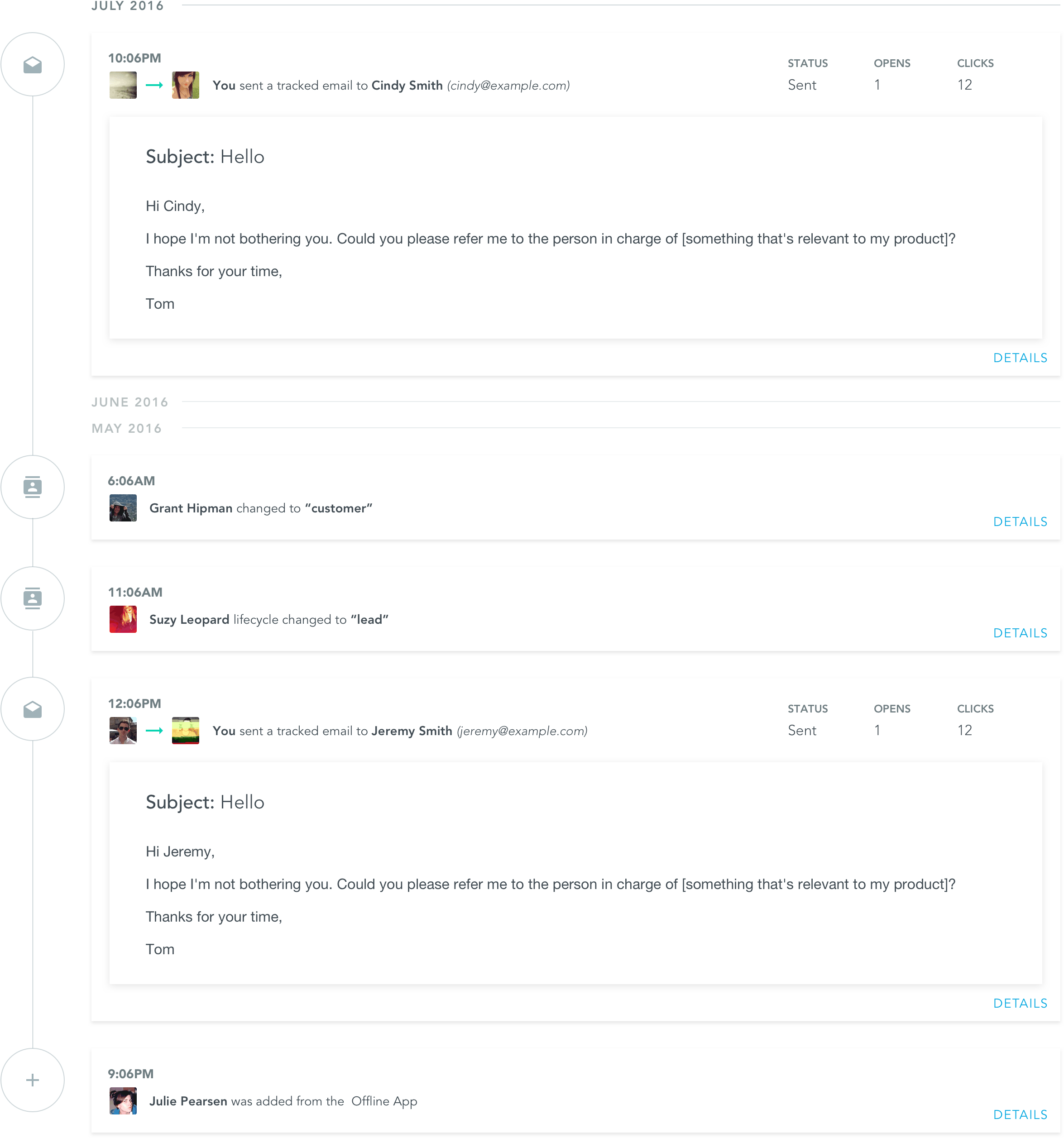 Based included Notification Feeds that are easy to drop into your app. These are great to include in Dashboards or roll-ups that display information about recent activity. Following the history of an object or user can provide great context into the activity of your app and allows you to quickly catch up on what has happened since you last logged in.