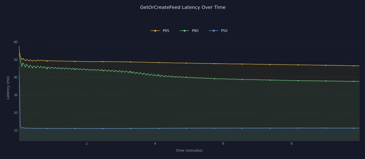 These results remained stable across low, medium, and high concurrency scenarios, demonstrating that Stream's feed performance does not degrade as applications grow.