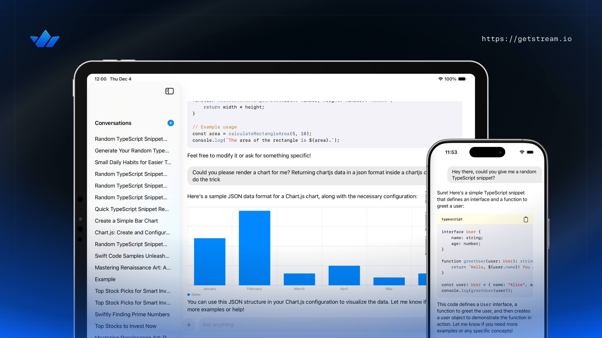 AI SDK Integration: Integrate StreamChat server-side with the popular AI SDK from Vercel.