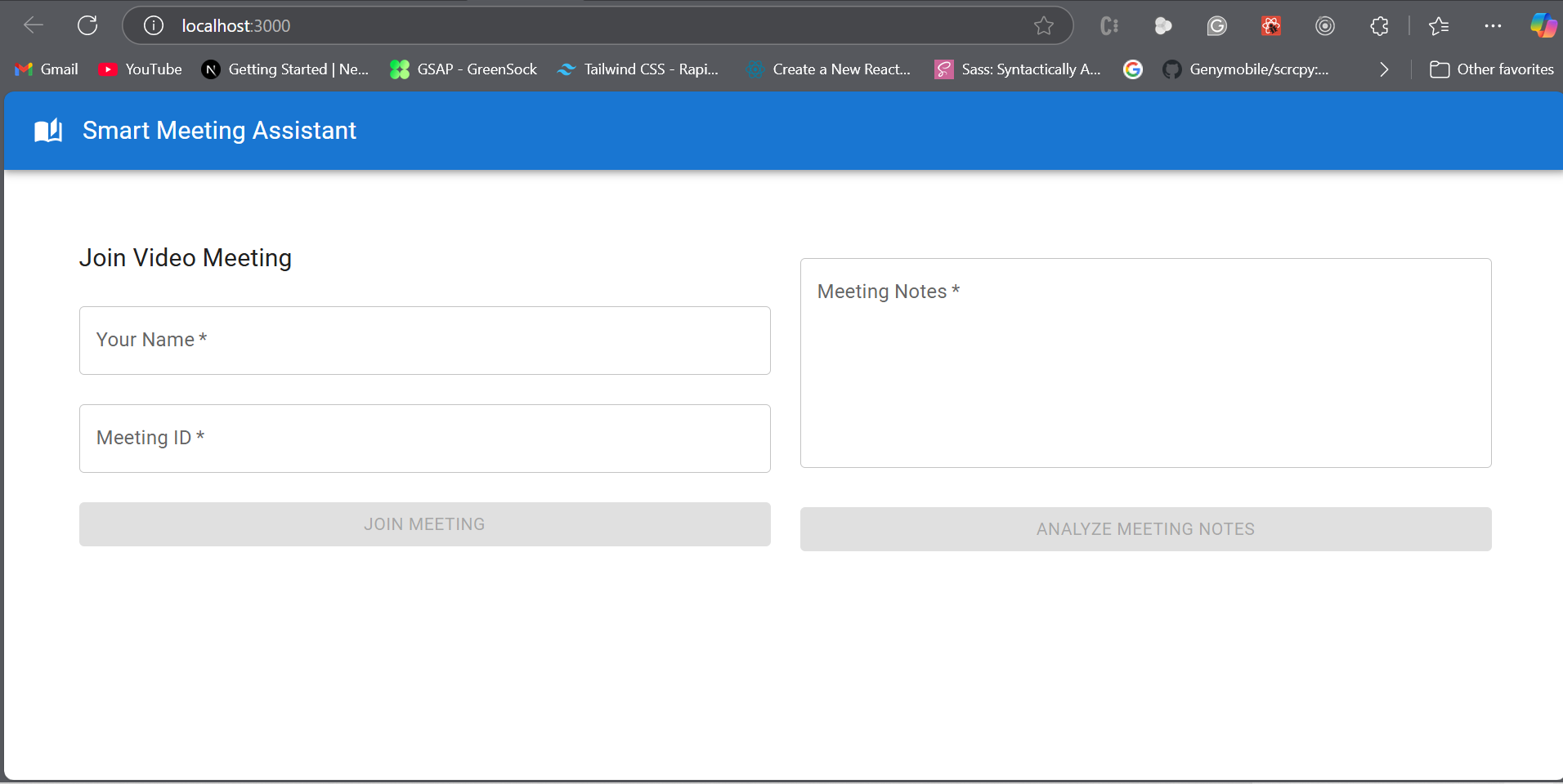 POST /api/analyze-meeting – Analyzes the meeting transcript using Gemini and returns summarized content, highlighting the action items.