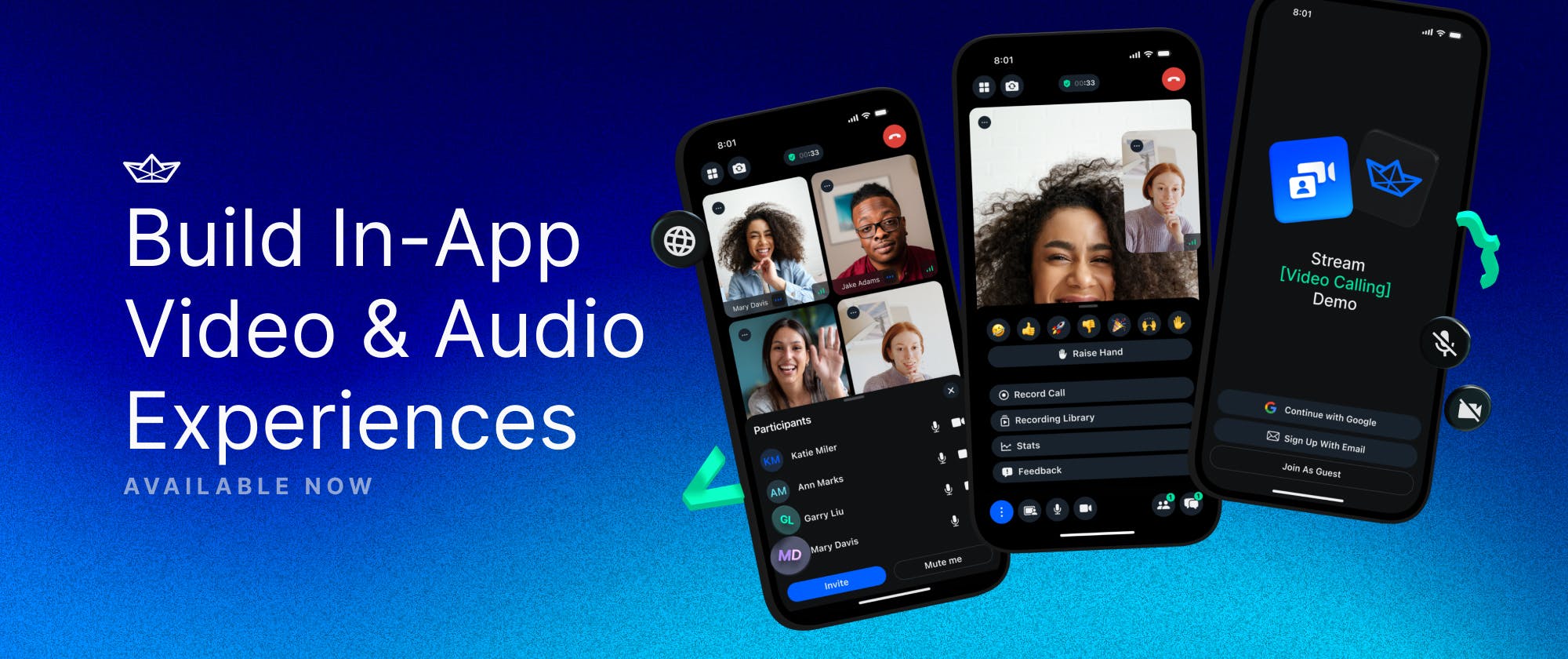 Stream powers Chat and Feeds for over a billion end users. For years, live video and audio have been our top requested products. The demand for in-app video has grown dramatically, especially in industries like Telehealth, EdTech, marketplaces, community spaces, and AI-enabled social networks.