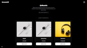 Found at /shop/[username]/products, this page represents the streamer’s shop, where users can browse and purchase products.