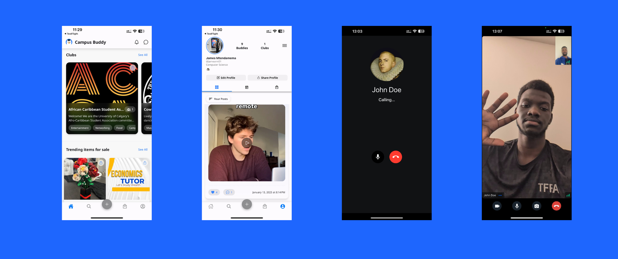 Campus Buddy currently uses Stream to power one-to-one video and audio calls between students. The experience is designed to mimic popular social platforms while remaining uniquely campus-focused.