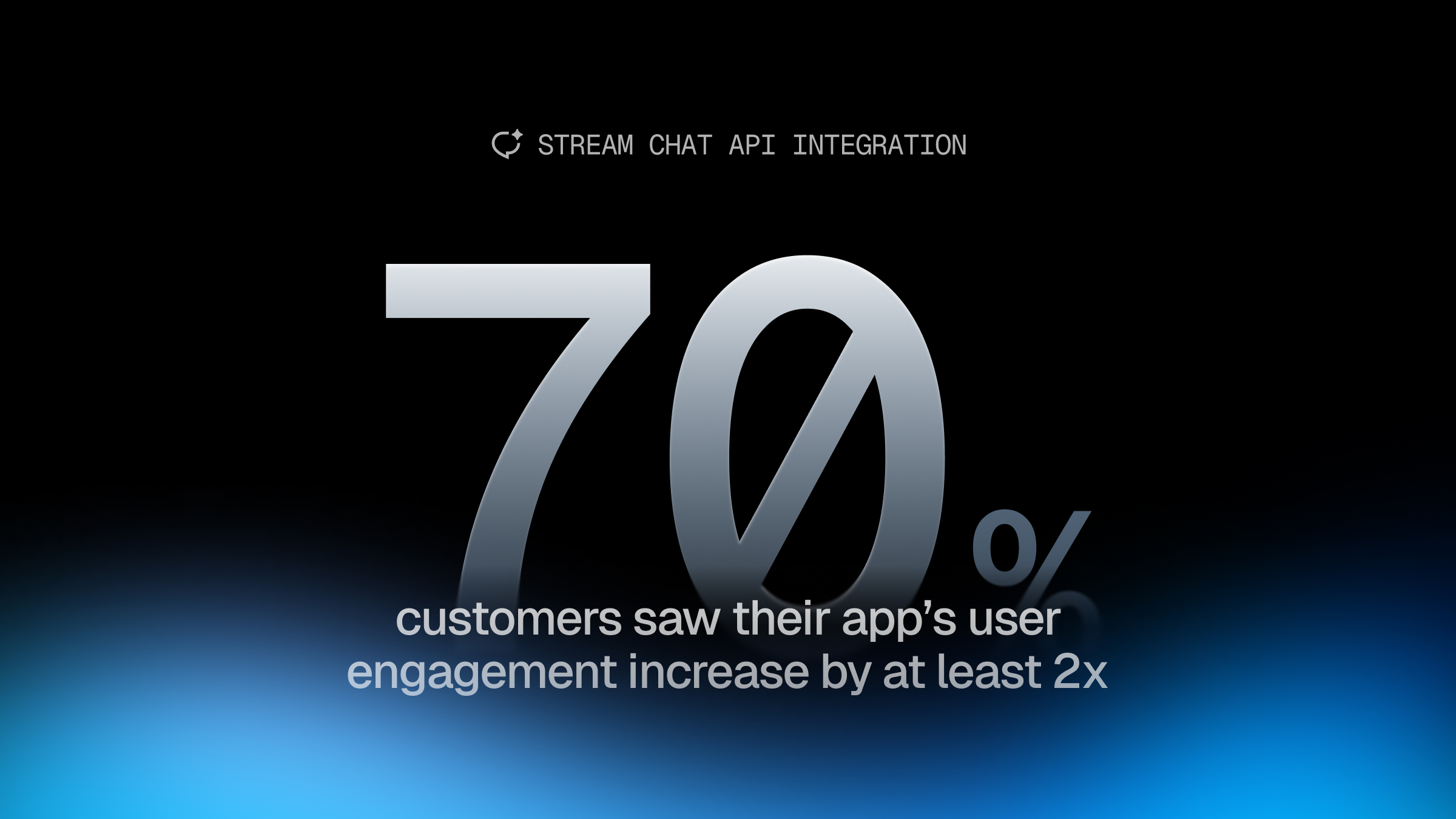 We found that 70% of Stream Chat customers saw their user engagement increase by at least two times after integrating the Chat API.