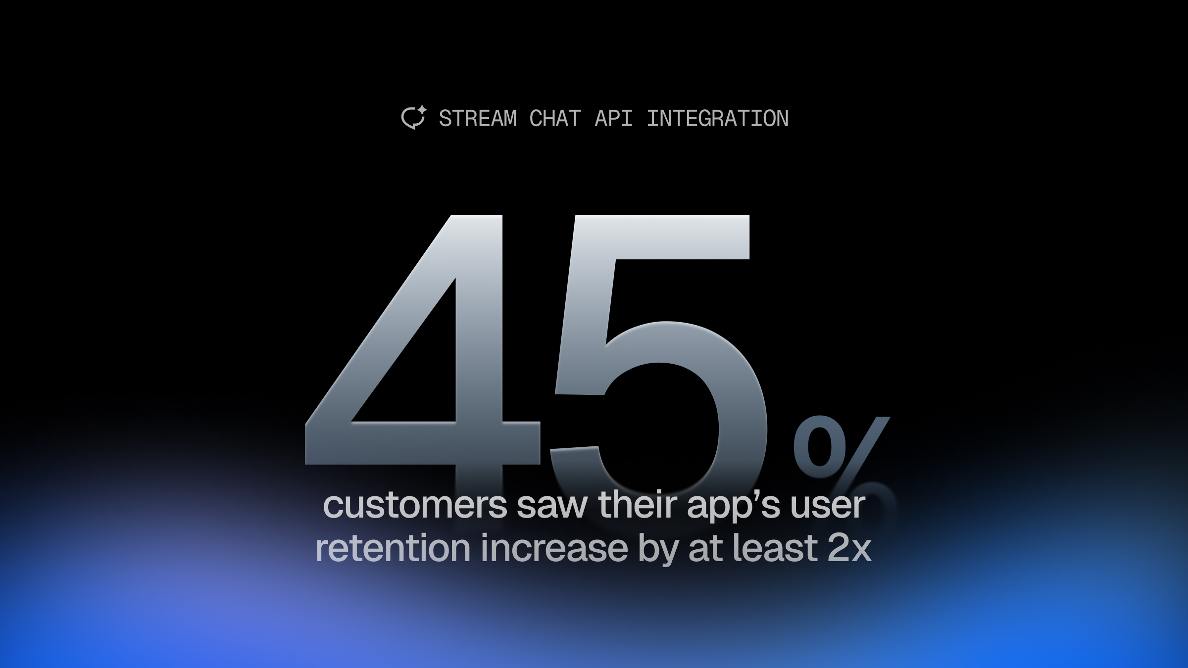 Across verticals, 45% of customers said their app’s user retention rate improved by at least two times after integrating the Stream Chat API.
