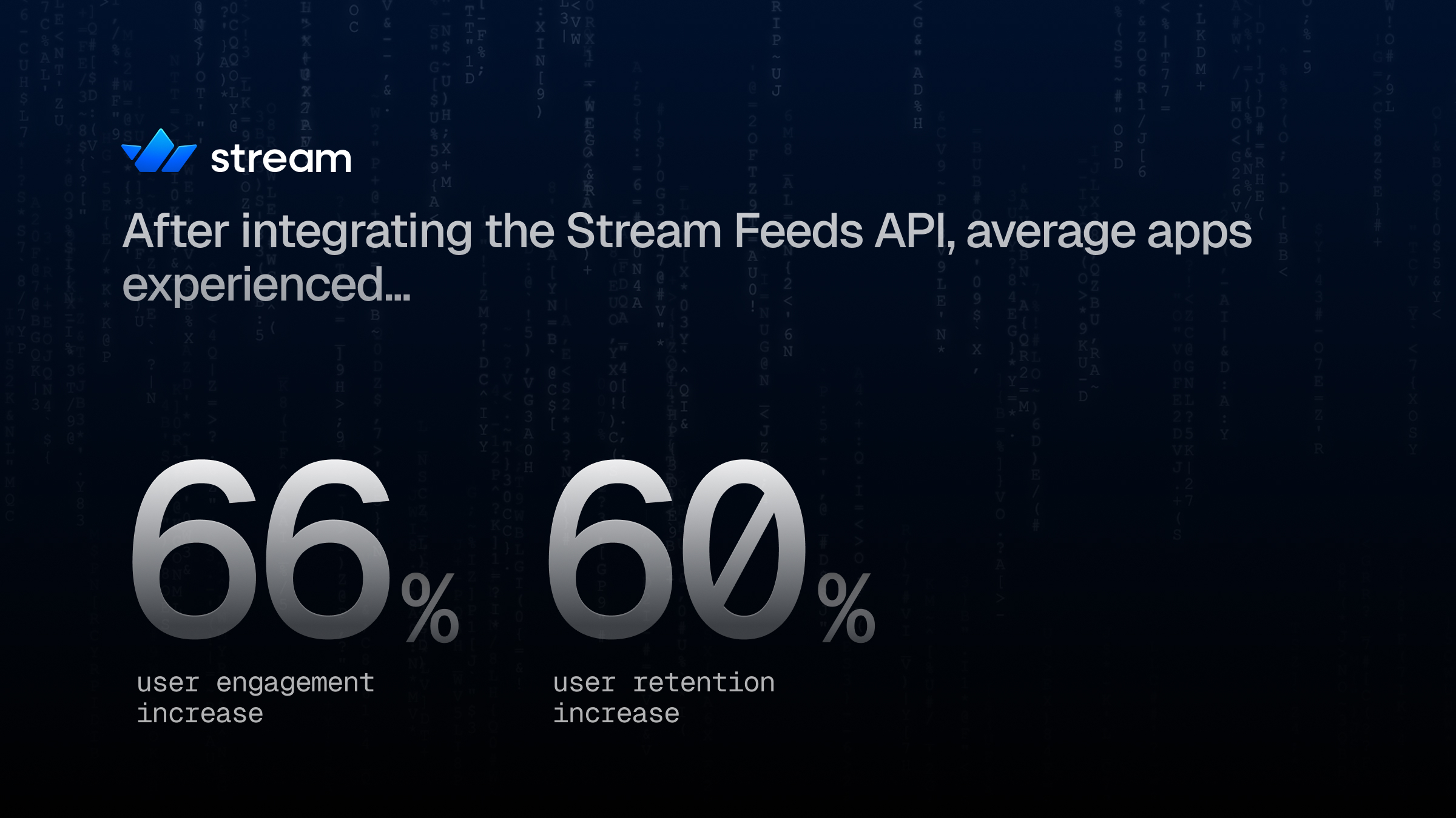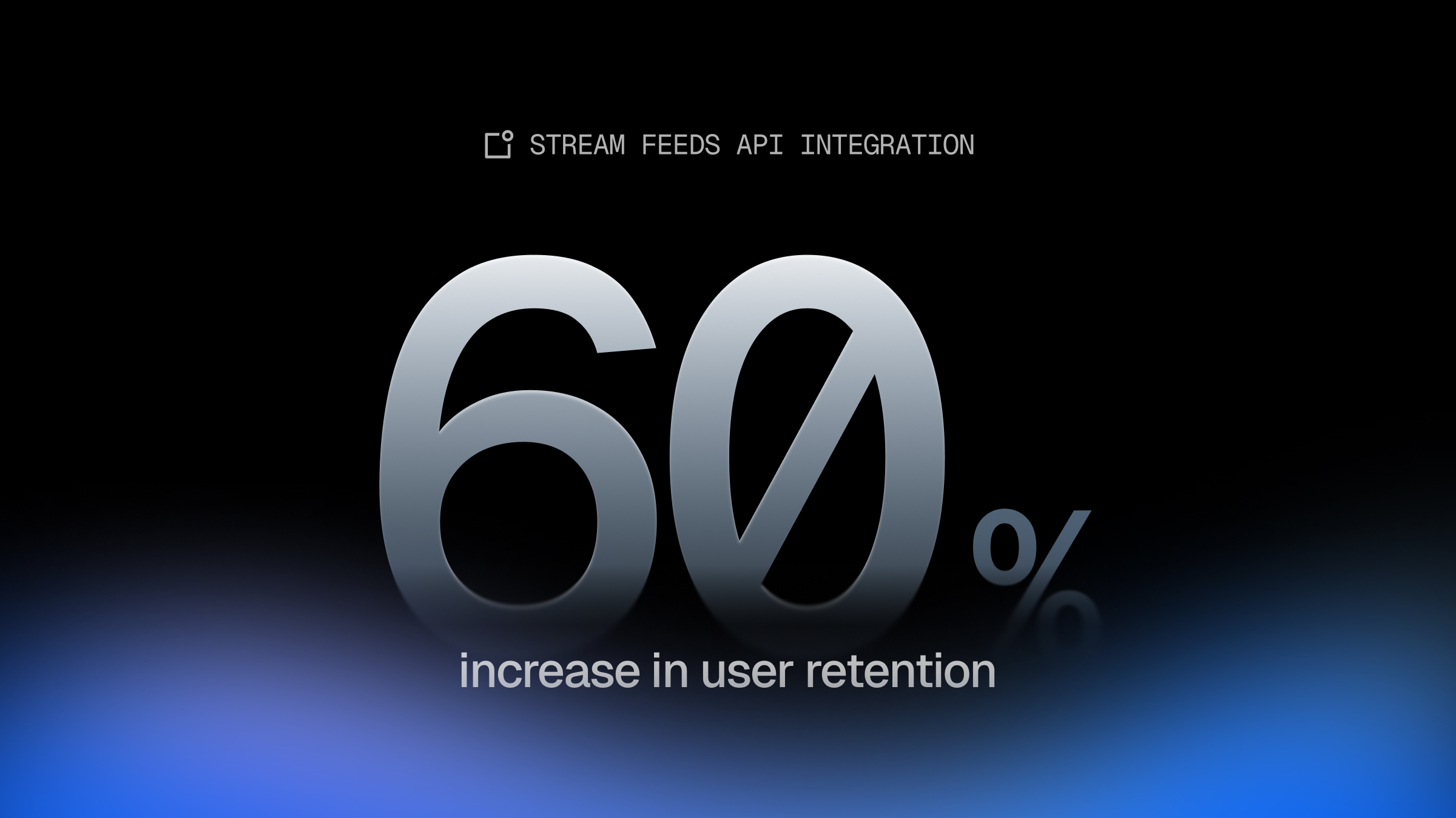 After integrating the Stream Activity Feeds API, on average customers said their user retention increased by 60%.