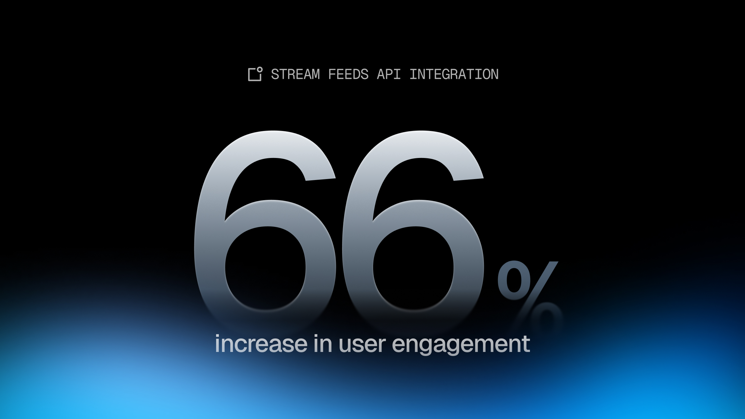 After integrating the Stream Activity Feeds API, on average customers said their user engagement increased by 66%.
