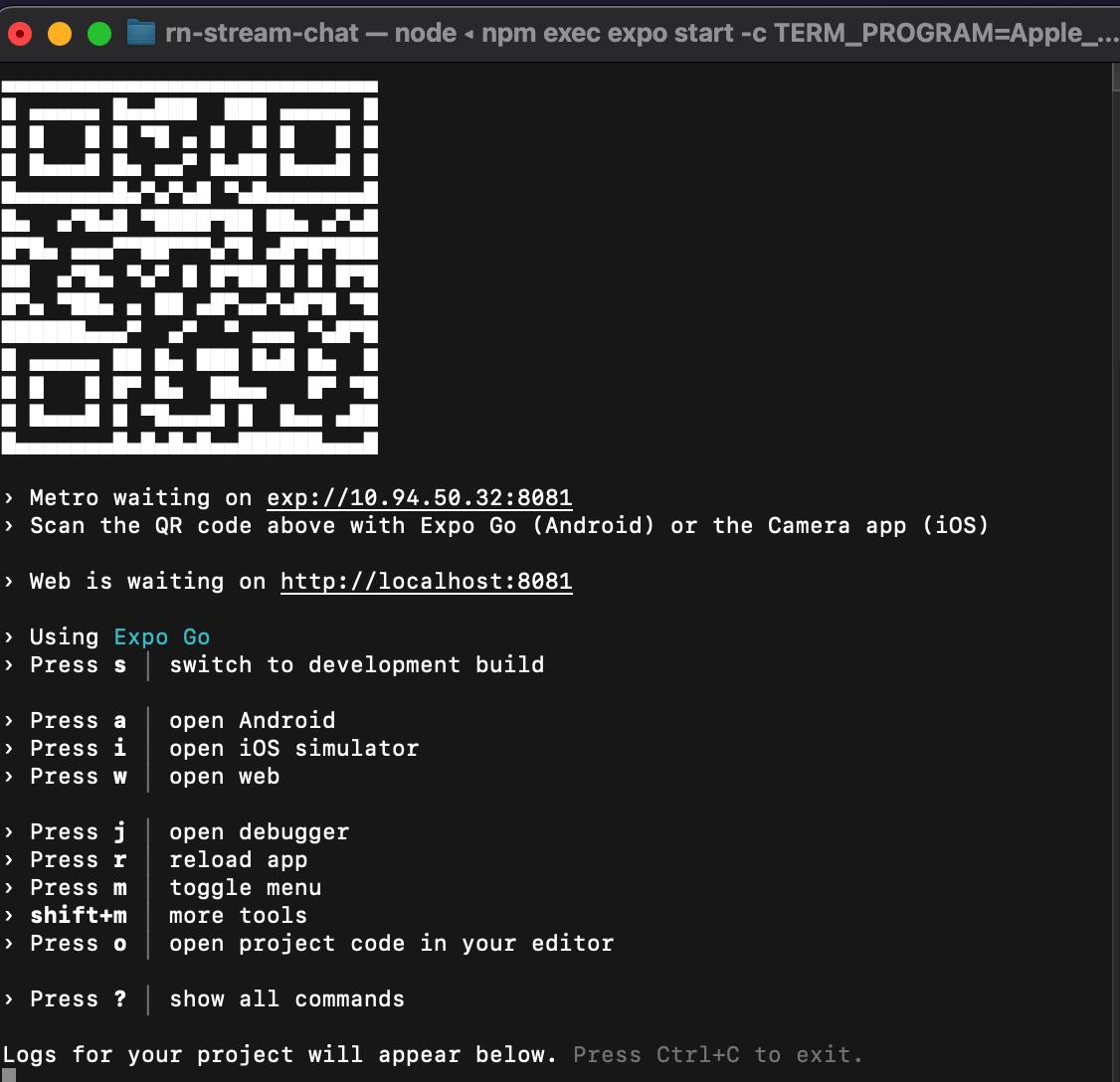 123cd rn-stream-chat npm i stream-chat stream-chat-react-native react-native-gesture-handler react-native-reanimated react-native-safe-area-context react-native-svg