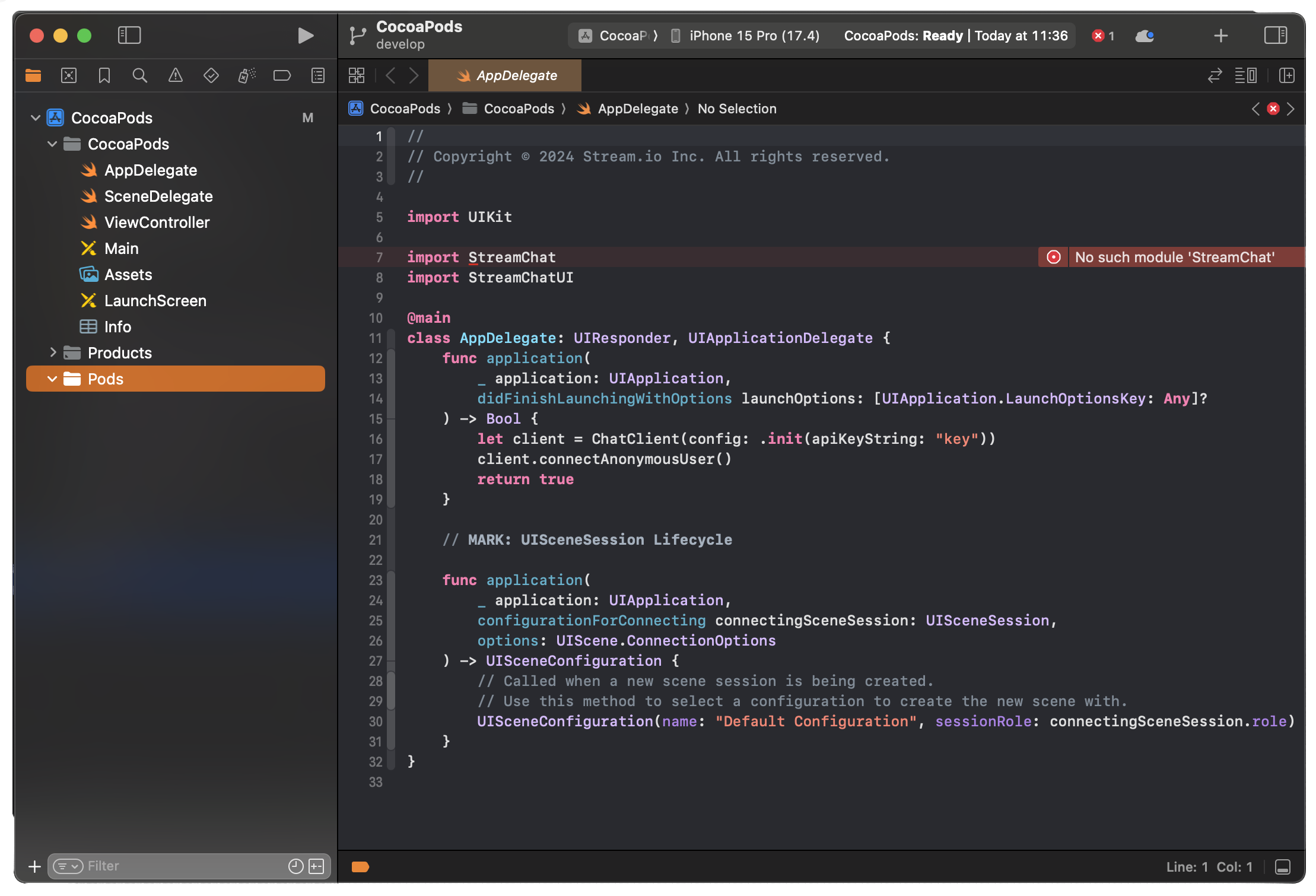 Before you remove CocoaPods, it's important to note each dependency in your project and their versions. In my case, I was only using Stream Chat in version 4.61.0.