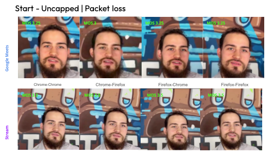 - Uncapped - with no restrictions on the bandwidth, the values are similar. In some cases, Stream Video is preferable, while in others, Google Meet is the better option. However, the differences are minor in both cases, which means audio works well on both.