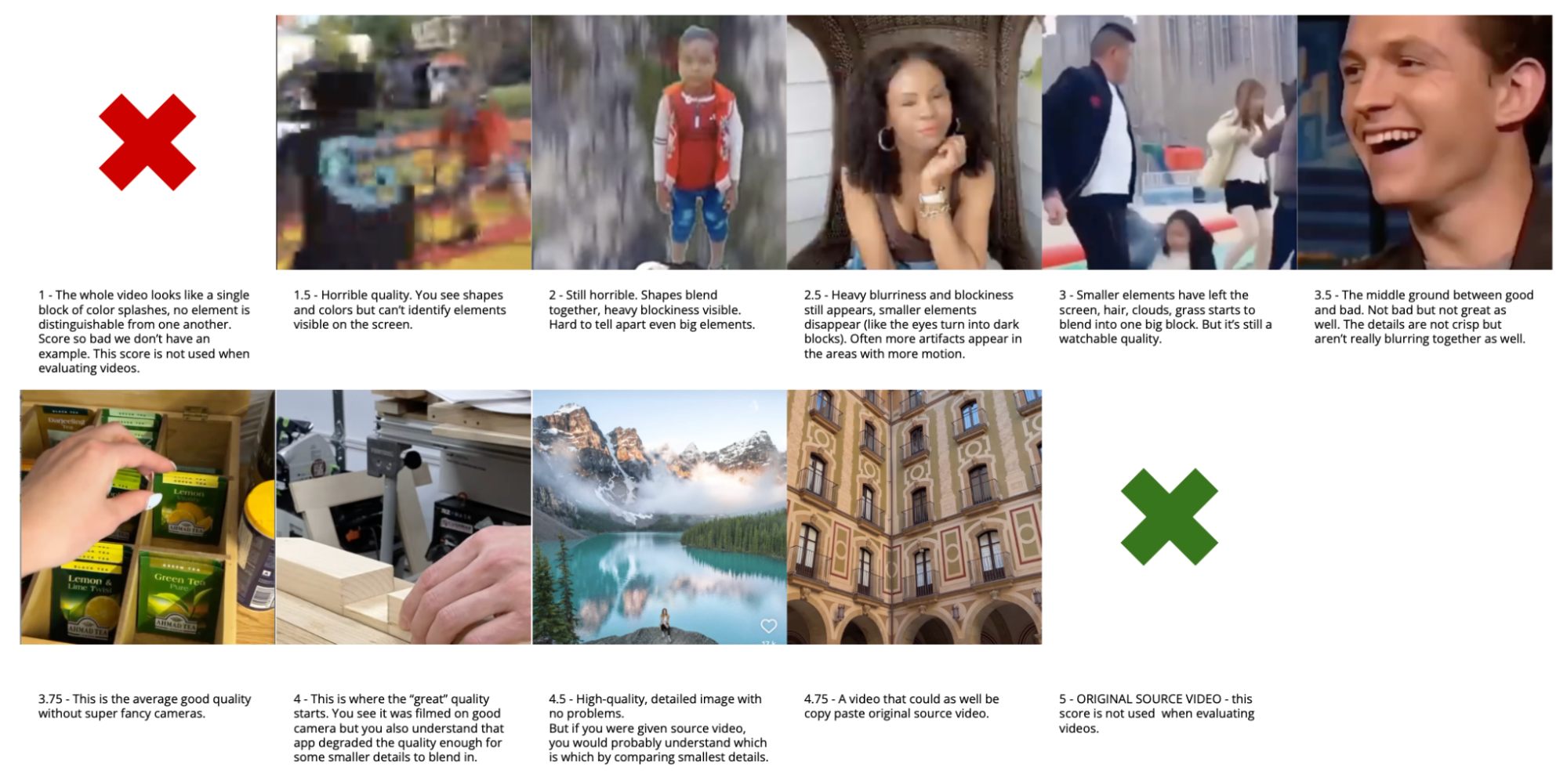 We will use the Mean Opinion Score (MOS) to rate the video and audio call quality. MOS is a standardised method for measuring the perceived quality of audio or video as judged by human listeners or viewers.