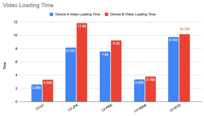 We were also testing how video performs if you are assigned a distant SFU (Selective Forwarding Unit) for a call, compared to one that is close to you.