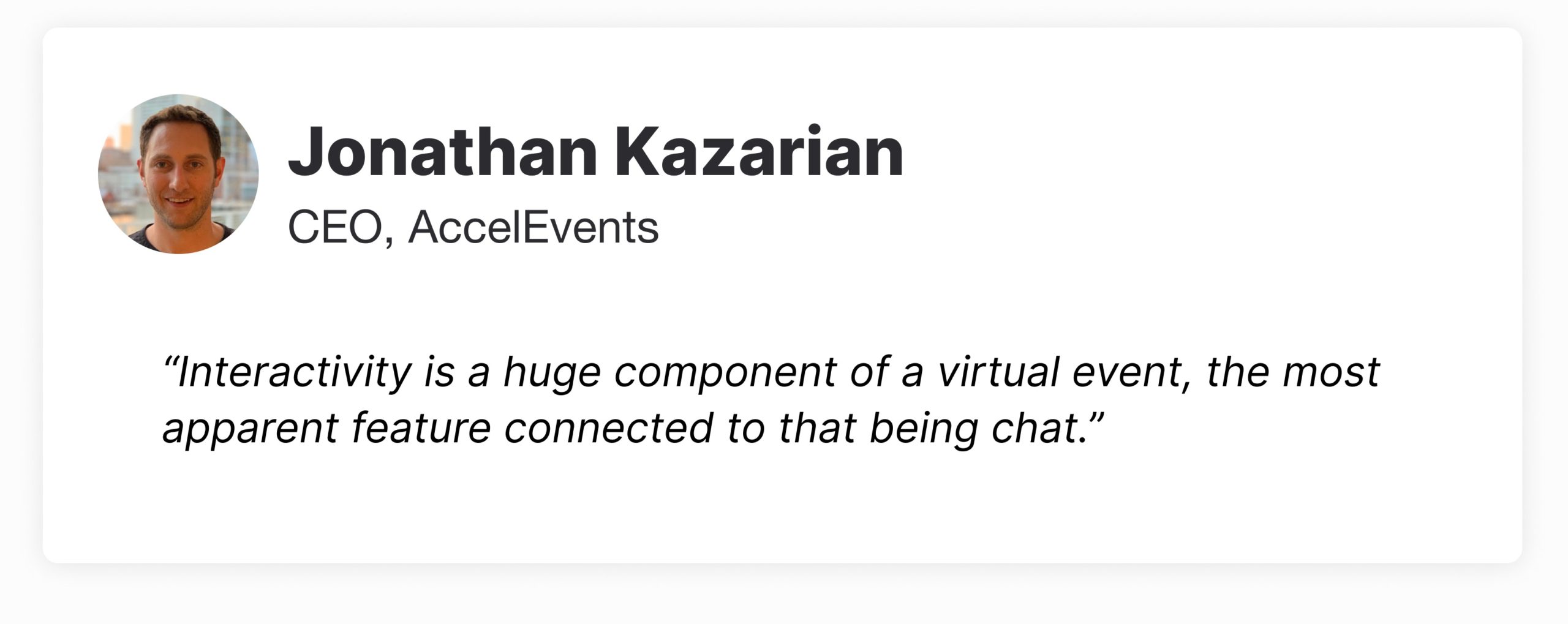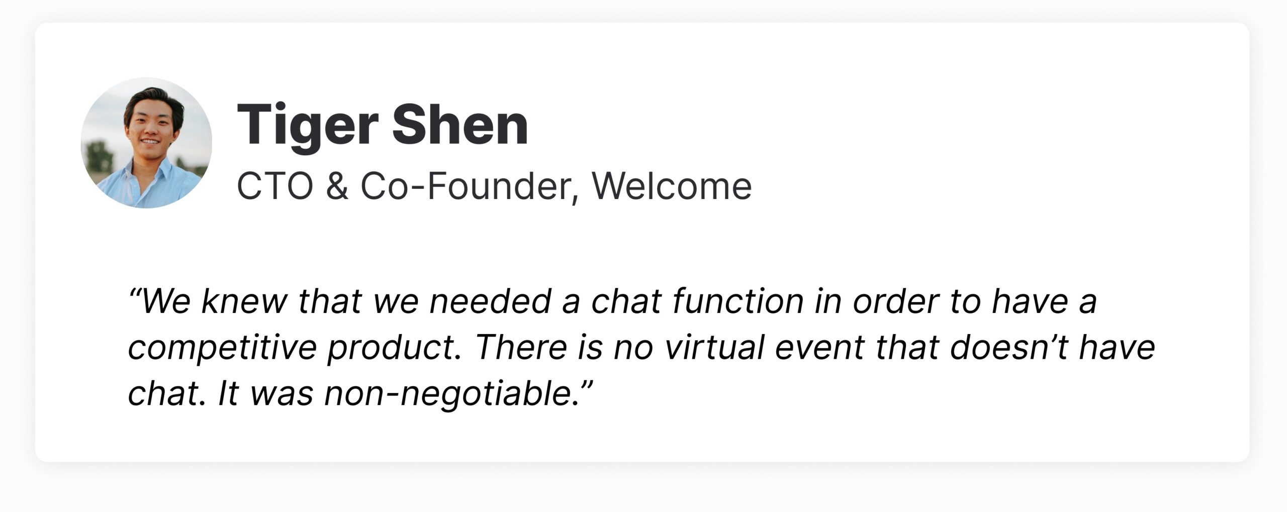 We knew that we needed a chat functionality in order to have a competitive product. There is no virtual event that doesn’t have chat. It was non-negotiable.