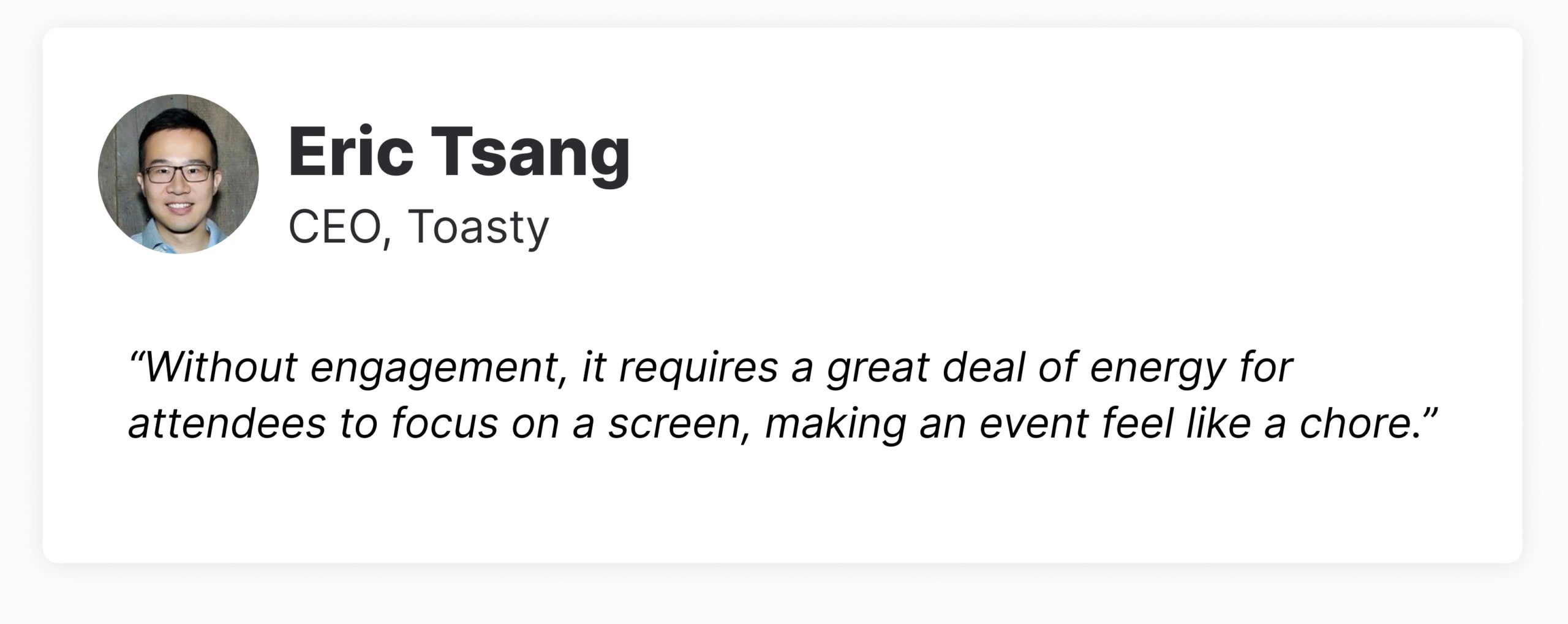 All this is to say that despite their inherent benefits, sometimes virtual events are disappointing, and they fail to replicate the awe and excitement of their in-person counterparts.
