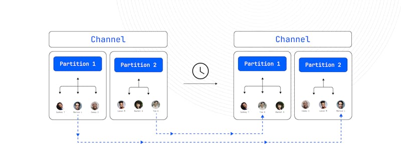Dynamic partitioning is particularly useful in scenarios where a large number of people are engaging in a live event, such as a game, a live stream, or a webinar. With so many messages flooding the channel, it can quickly become overwhelming, making it difficult for meaningful engagement to occur among participants. To address this, dynamic partitioning divides watchers into smaller partitions within the channel, boosting the chances of meaningful and enjoyable interactions without restricting the volume of messages sent.