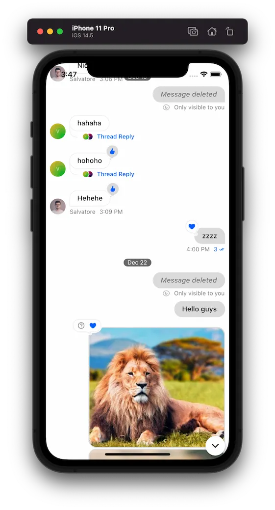 The StreamMessageListView shows the list of messages of the current channel. It has inbuilt support for