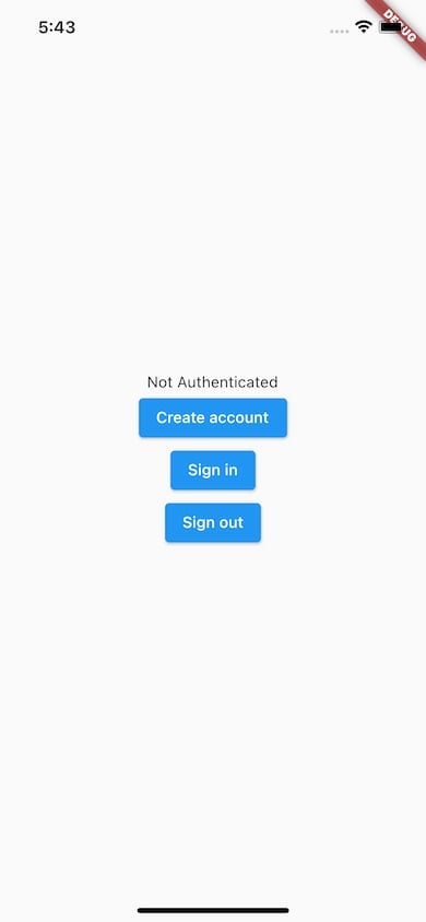 in the createAccount, signIn and signOut methods. There is a button to invoke each of these methods.