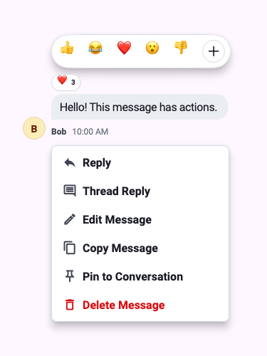 By default, the SDK renders the following message actions: