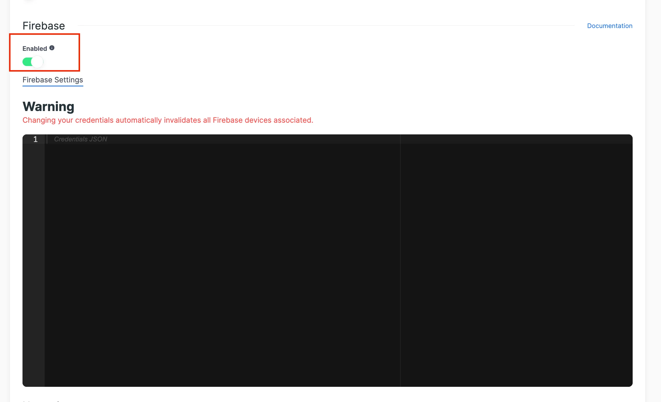 You can upload your Firebase credentials using either the dashboard or the app settings API (available only in backend SDKs).