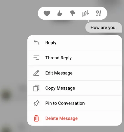 When a message is long pressed, the MessageActionsModal is shown.