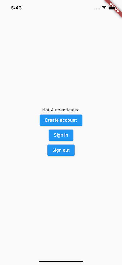 The Auth widget handles all of the authentication logic. It initializes a FirebaseAuth.instance and uses that in the createAccount, signIn and signOut methods. There is a button to invoke each of these methods.
