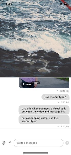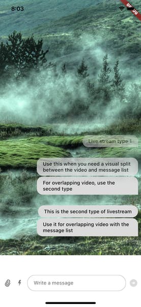 There are two common scenarios in live-streaming applications depending how well integrated the two components (video + chat) are allowed to be on the screen. Two common types are split-screen and a chat overlay that fades in.