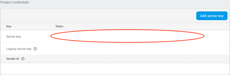 Under Project Credentials, locate the Server key and copy it