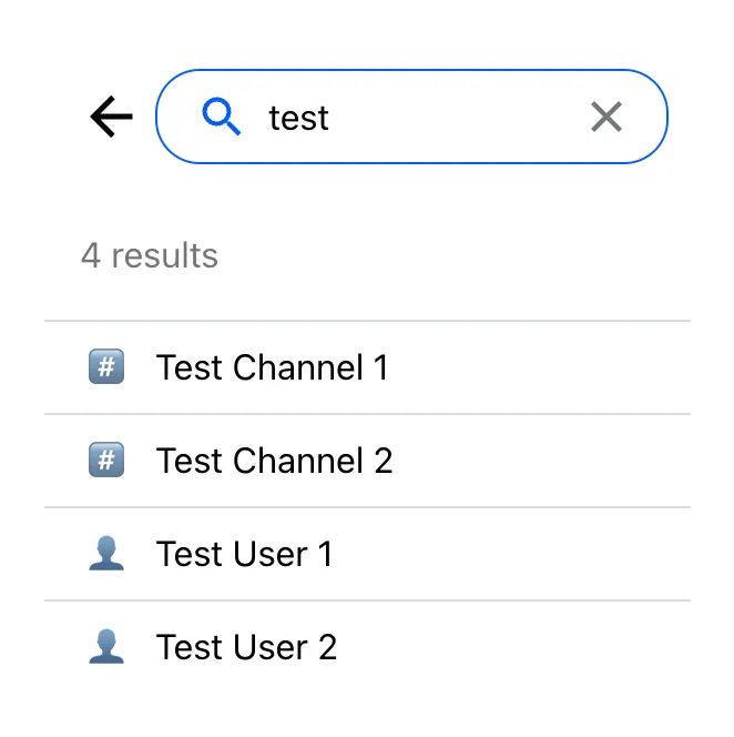 Channel search is used to find channels based on a query that includes user input. Depending on your needs, it can be used to either find existing conversations, start new ones, or do both.