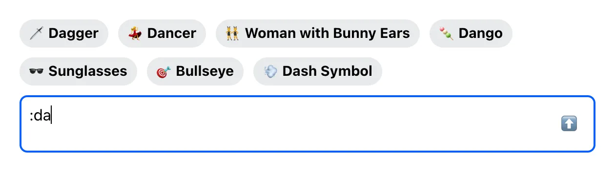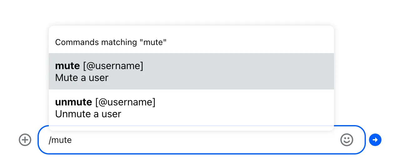 One of the advanced features of the message input is autocompletion support. By default, it autocompletes mentions, commands and emojis.