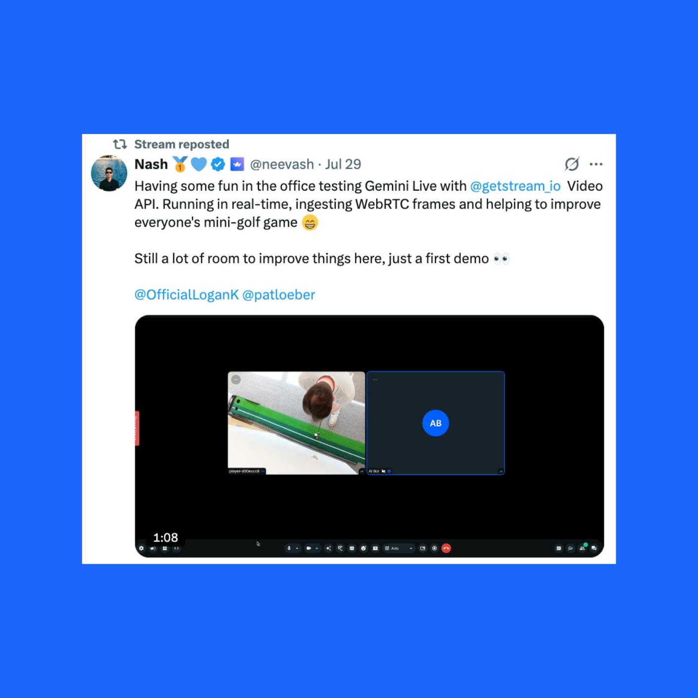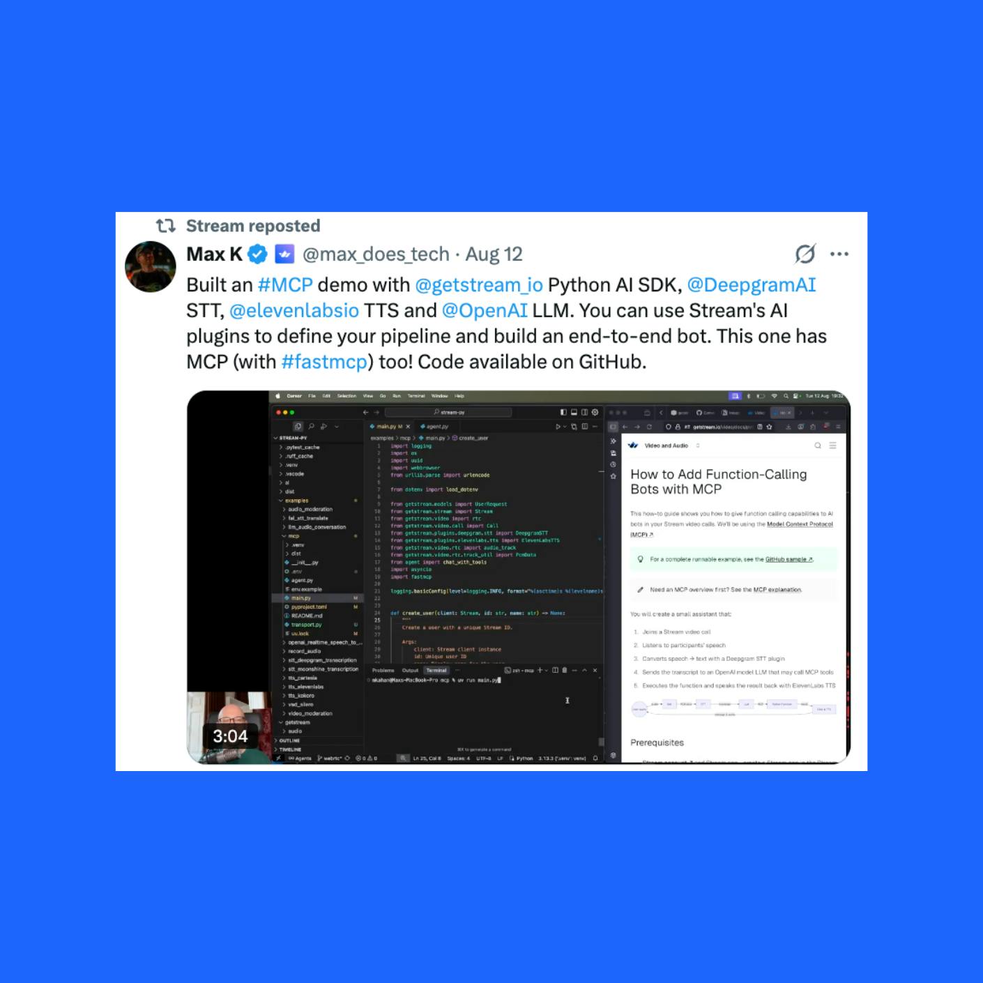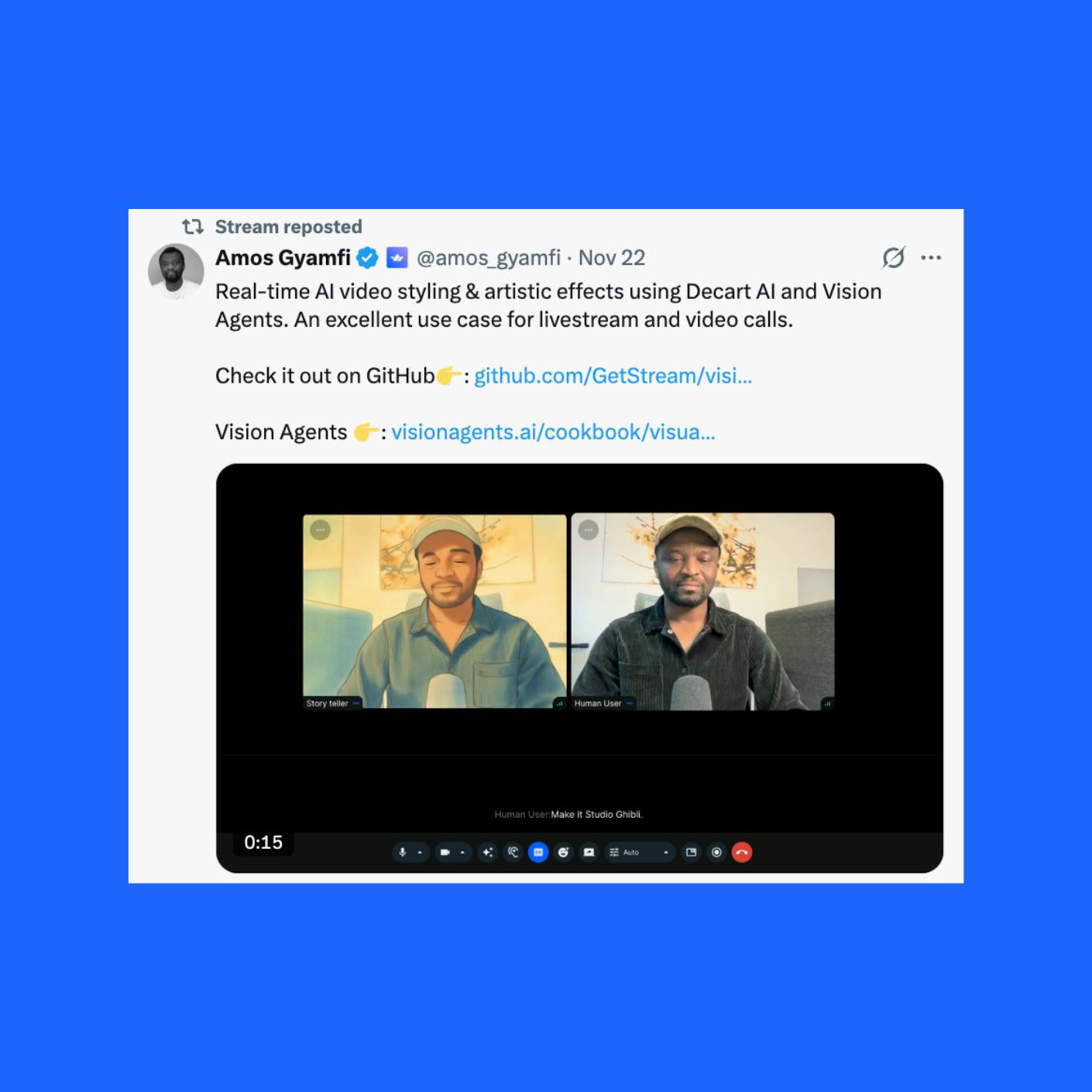 Integrate your AI model directly into Stream Vision Agents and get instant distribution to thousands of developers building real-time, multimodal applications.