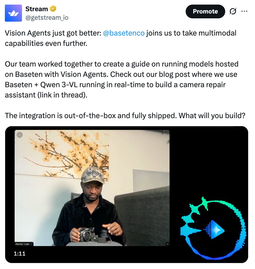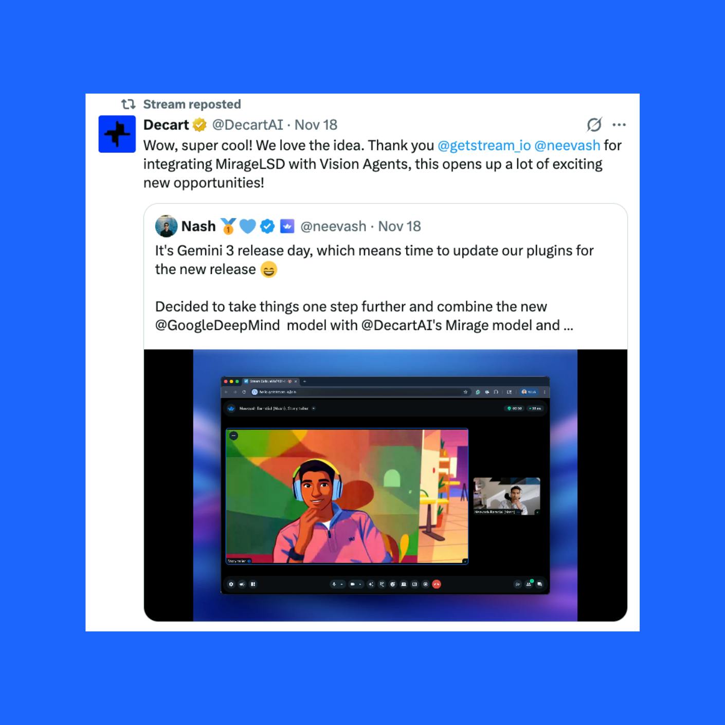Integrate your AI model directly into Stream Vision Agents and get instant distribution to thousands of developers building real-time, multimodal applications.