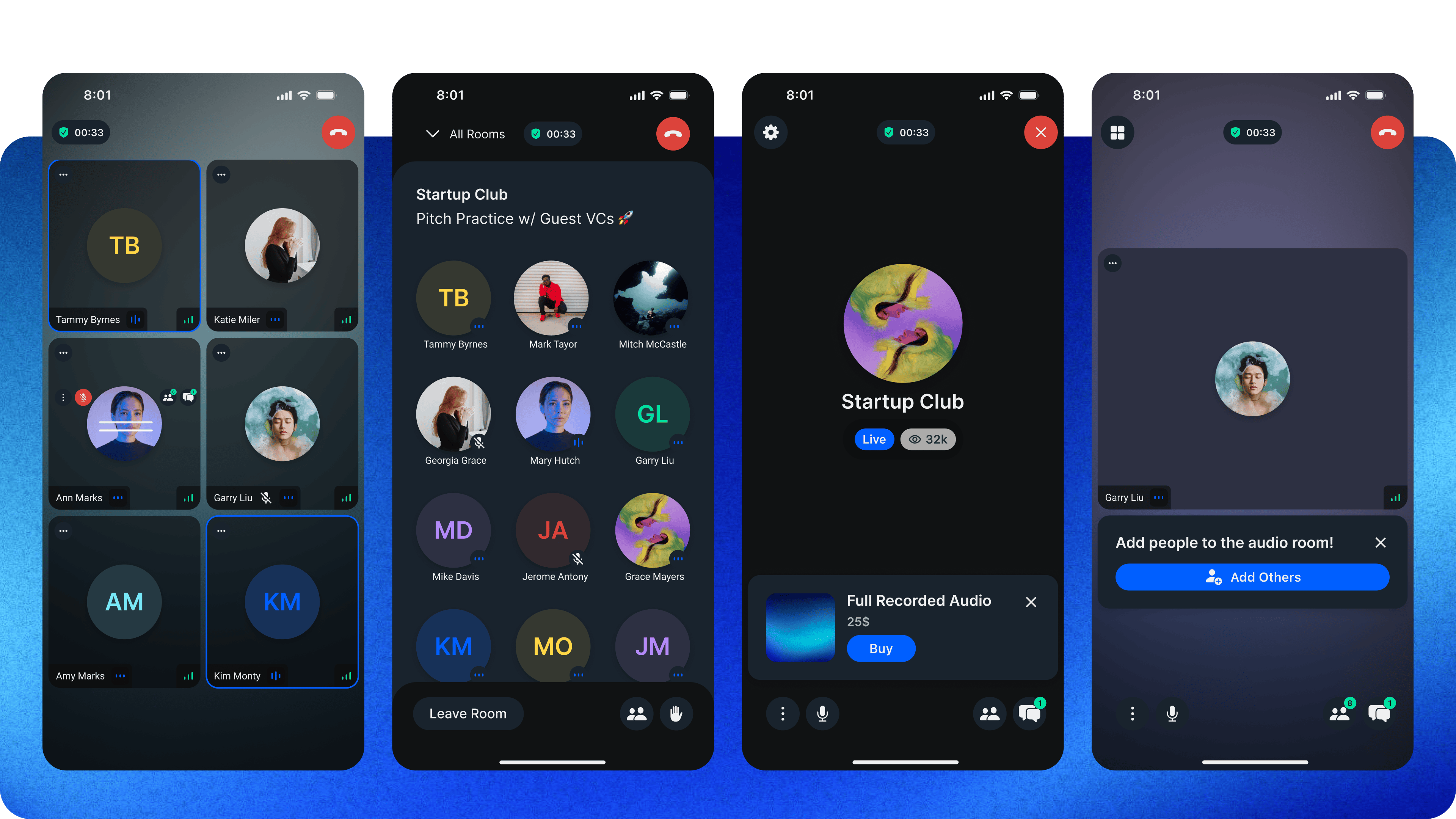 Build enterprise-ready audio rooms experiences customized to your unique case, without the headache of becoming an expert or spending months on development.
