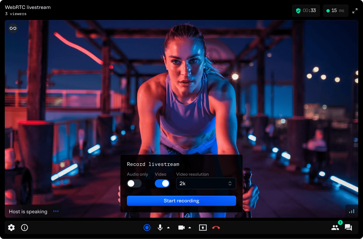 - WebRTC is optimal for latency, HLS is slower but buffers better for users with poor connections