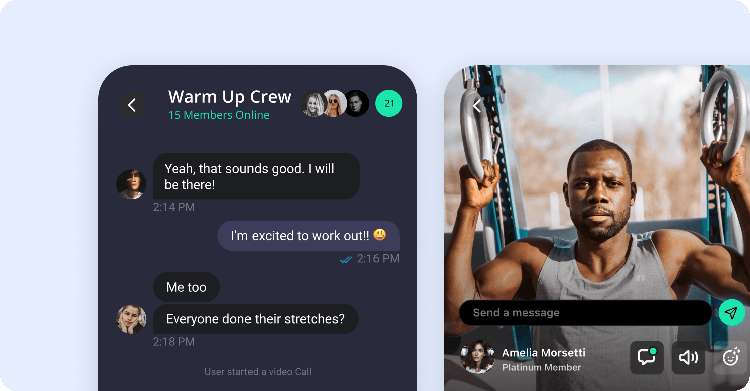 Help your in-app fitness community level up with Stream’s Chat, Video, and Voice APIs and SDKs to support their sports and wellness goals.